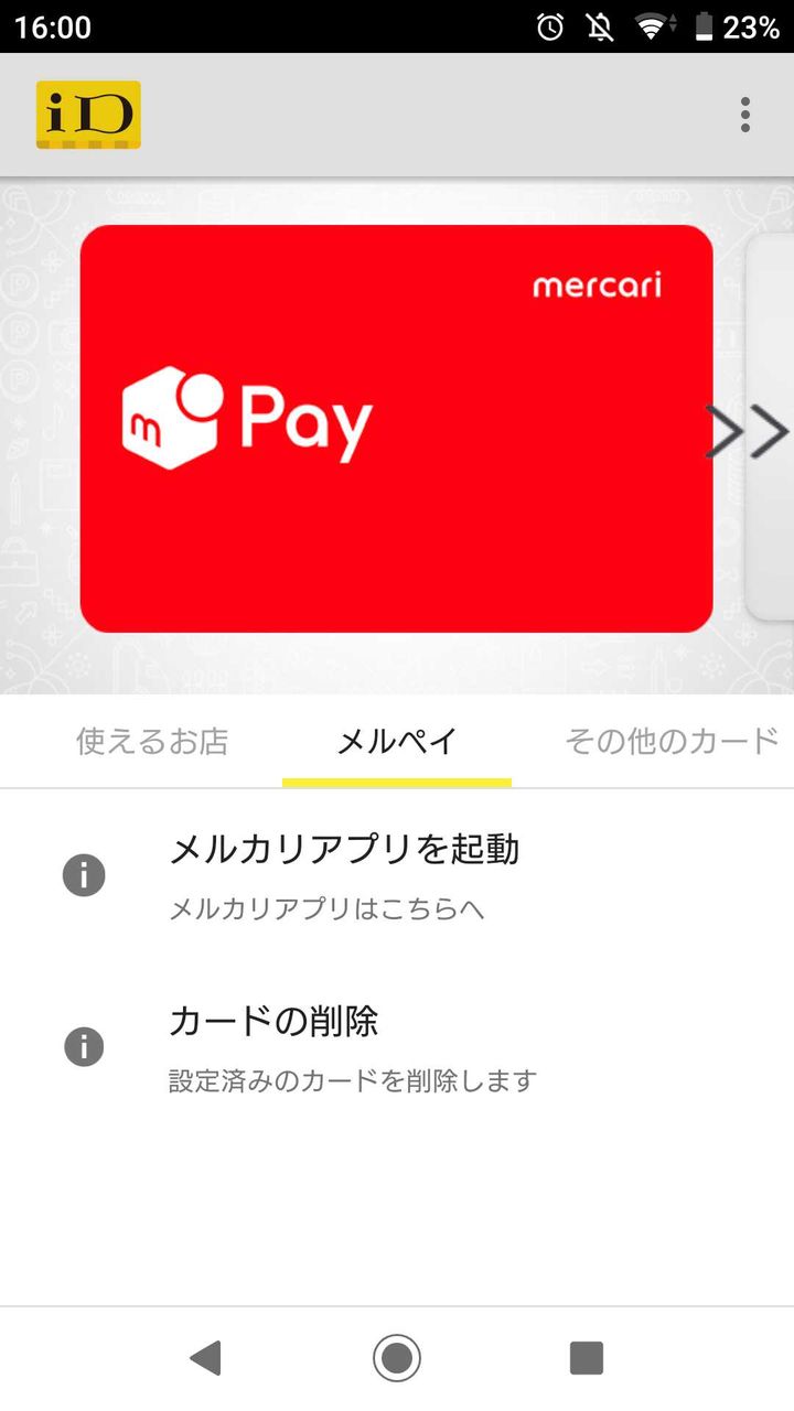 友人のスマホのiDアプリ。iDにはそもそもGPayみたいなカード決済手段選択画面が用意されていたのね。ぜんぜん知らなかった。そもそもこっちで独自にGPayみたいな機能がサポートされてるからGPayでわざわざ管理しないということか。