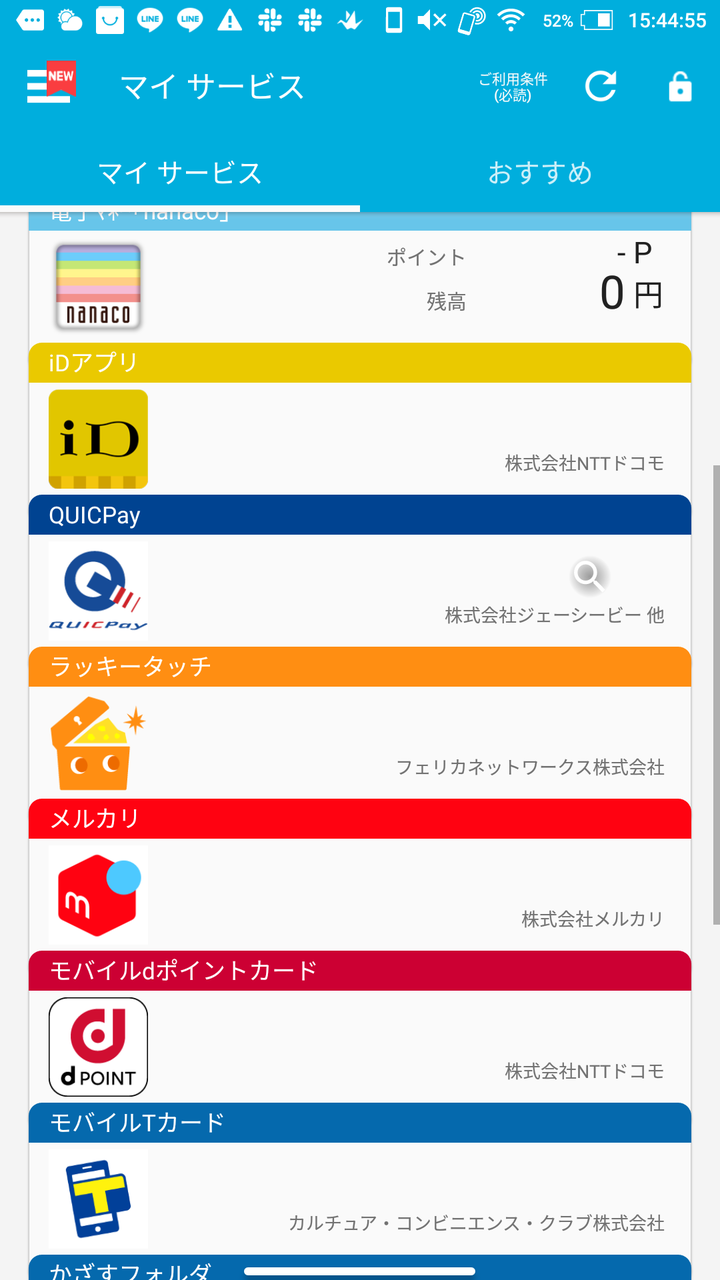 手持ちのAndroid端末には既にGoogle Payで追加できる四種類(Suica Edy nanaco waon)とKyashアプリを追加して設定できるQUIC PayとLINE Payから追加するQUIC Payが登録されている。